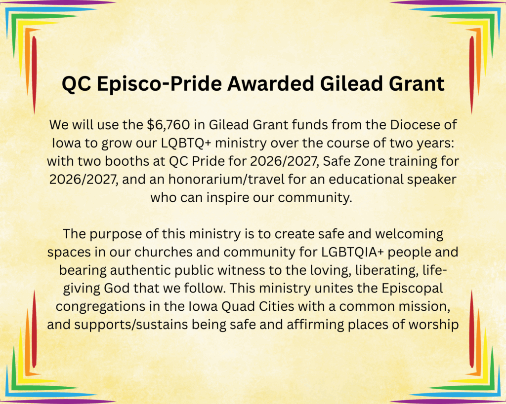 Creating safe and welcoming spaces in our churches and community for LGBTQIA+ people and bearing authentic public witness to the loving, liberating, life-giving God that we follow.
